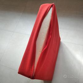 Divano a due posti, in stoffa di colore rosso, delle dimensioni di 156 centimetri di lunghezza x 90 centimetri di larghezza e 66 centimetri di altezza, con braccioli laterali, i due cuscini schienali e i due cuscini seduta sono provvisti di cerniera sfoderabili e lavabili, ottimo stato, poco usato, come nuovo, vendo ad interessato a 150 Euro. Ritiro a domicilio. Astenersi indecisi e perditempo.