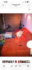 Divano moderno e tenuto veramente bene, seduta ottima, colore originale arancio con copri divano grigio, lunghezza cm 270 larghezza penisola destra cm 150 x 100cm RITIRO A MANO