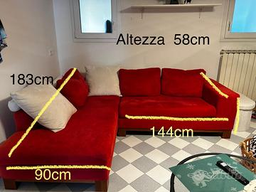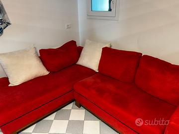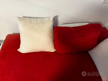 Divano 6/7 posti rosso e bisnco con piedini in legno, usato ma ancora in buonissime condizioni, presenta qulche segno di usura sui piedini e il colore leggermente sbiadito su slcuni punti. La lampo di un cuscino non si chiude perche il gancetto e uscito dalla cerniera, ma gli altri sono perfetti. È totalmnte sfoderabile e si puo lavare. Il divano è leggerissimo e si puo dividere in due per aggevolare lo spostamento. Circa misura 2 metri per 2 e qualcosa… per maggiori foto o informazioni contattatemi, prezzo trattabile