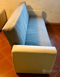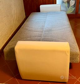 Divano a letto 3 posti colore bianco e grigio, dimensioni: 220cm di larghezza, 80 cm di profondità, in ottime condizioni