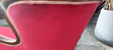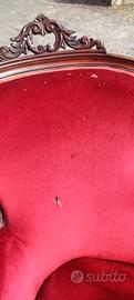 Divano a tre gobbe dell'800 in legno e velluto rosso. Sul tessuto presenti graffi davanti e dietro come da foto. Dimensioni larghezza 1,80 , profondità 80, altezza 105, altezza seduta 43. Modalita' di ritiro da concordare.
