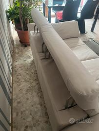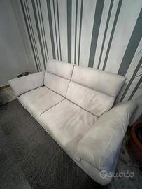 Divano color sabbia in microfibra con braccioli regolabili e piedini in acciaio