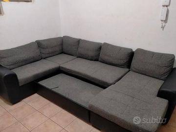 Merlin - Divano ad Angolo con Funzione Letto e cassettone Integrato in Microfibra, Nero/Grigio, Penisola Lunga a Sinistra. Dimensioni 1,57P x 2,06l x 3,12H metri. Prezzo di acquisto 1,299 nuovo,,Prezzo di vendita 400€
