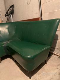 Divano in pelle verde, anni 50, da sistemare. Da rititare sul posto, non posso soeditlo.