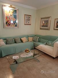 divano ad angolo di colore bianco. h 80, prof 90, 300x230.