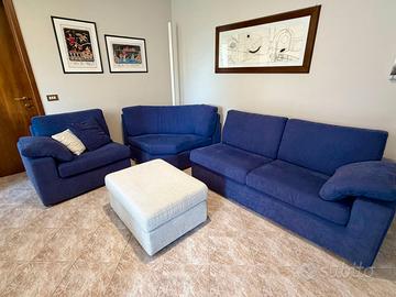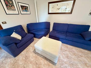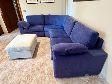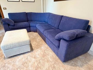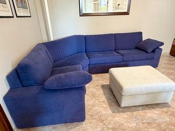 Vendo divano ad angolo colore blu in buone condizioni. Il divano è tutto sfoderabile e lavabile in lavatrice (anche la struttura, non solo i cuscini). Misura: 210 cm nel lato corto e 295 cm nel lato più lungo. Il divano è composto di tre pezzi per rendere più facile il trasporto. Nel prezzo è compreso anche il puff (completamente sfoderabile e lavabile). Misure del puff 80 cm x 60 cm. Prezzo trattabile e trasporto a carico dell'acquirente.