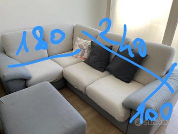 Vendo divano in tessuto ad angolo sfoderabile con le seguenti misure cm 180x240 scomponibile. Il divano presenta qualche segno di usura ma in buono stato .