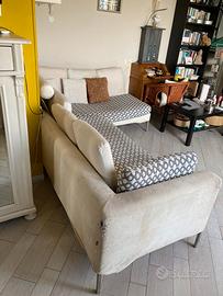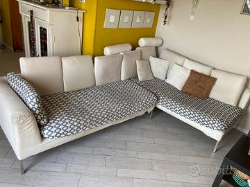 Vendo, causa rinnovo arredamento, divano ad angolo componibile costituito da 2 divani gemelli lunghezza ognuno 175 cm e profondi 85 cm Difetto evidente su un angolo Copertura seduta rifatta