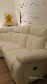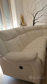 divano angolare 2,4 mt x 3,0 mt seduta comodissima dato la sua larghezza e altezza oltre che il memory. sulle sedute di testa c'è relax elettrico per regolarlo come uno desidera e ricarica usb. La seduta centrale della parte lunga , si può smontare e posizionarla su quella corta , in base alle esigenze di come lo si vuole mettere. usurato su alcuni punti ma il memory è ancora super comodo e il relax è perfettamente funzionante.