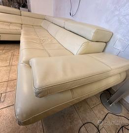 Divano ad angolo in vera pelle colore beige