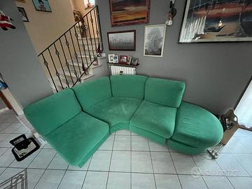 Vendo divano ad angolo tondo foderato in alcantara, struttura in legno no trucciolato in buone consizioni, completamente sfoderabile in buone condizioni. 500 €