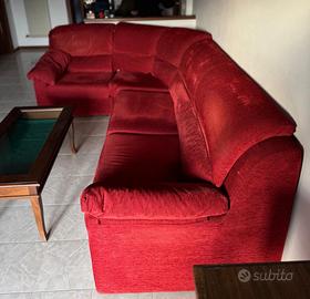 Vendo divano ad angolo smontabile, tessuto in buono stato a parte una piccola zona sotto una seduta, come si vede nella terza foto.
