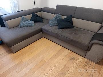divano ad angolo con shislong con qualche graffio di gatto e alcune macchie di cibo