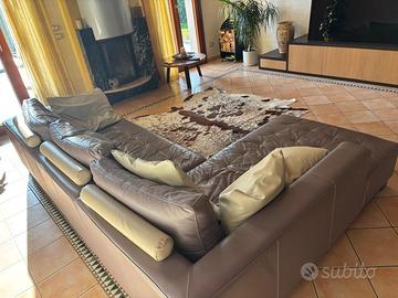 Vendo divano ad angolo in pelle griglia completo di cuscini (non è divano letto) con una zona leggermente usurata come da foto ma in ottimo stato. Misure : 2,90 metri di lunghezza, 2 metri di penisola