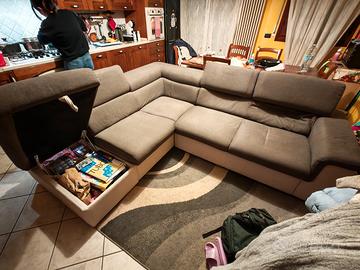 Vendo divano letto ad angolo con penisola a sinistra. Misura 260 x 220 cm. La parte dove esce la panchetta del letto è ceduta la seduta e lo schienale, ma per il resto è in buone condizioni generali, in quanto è sempre stato coperto con i teli e il tessuto è integro e senza macchie. Vorrei realizzare almeno 100 Euro. Fate girare se potete. Grazie mille. 🖐️