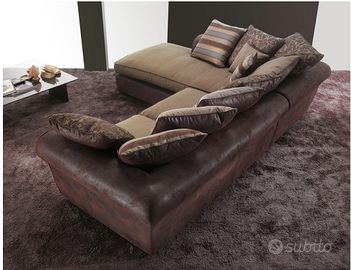 Bellissimo divano di alta fattura della pregiata ditta Aerre Italia, attualmente fuori catalogo. Il divano è ancora imballato cosi come è stato consegnato originariamente, tenuto in condizioni impeccabili. Rispetto alle foto catalogo, il divano è customizzato color panna con struttura in pelle scura e gli otto cuscini addizionali sono anche questi color panna con bordini marroni scuro, a richiamare il colore della struttura.