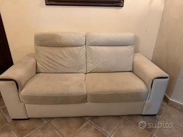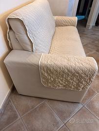 Vendo divano in similpelle colore beige completo di copri divano. La struttura è perfettamente integra, molto comodo, il rivestimento presenta una normale usura. Larghezza 195 altezza 100 profondità 90. Lo vendo per passaggio a divano più grande.