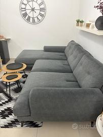 Vendo divano Poltronesofa’ come nuovo, tessuto in alcantara grigio, con cuscini verticali reclinabili in avanti per una seduta più vicina. Misura 3M di lunghezza, 1,17 di larghezza CM, e penisola 1,80 CM. Prezzo trattabile