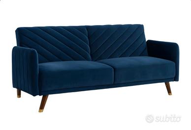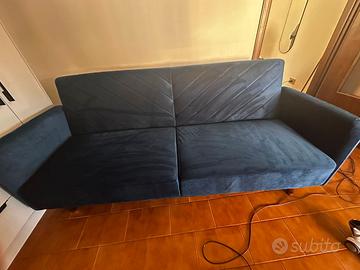 Divano letto in legno e camoscio blu, ancora il garanzia, usato pochissimo