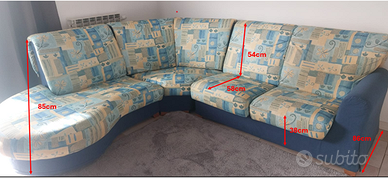 Vendo divano usato. Divano Angolare 220x150x86 (tutte le misure in foto). Ottime condizioni. Comodo. Sfoderabile. Trasportabile in 3 moduli separati. Stato integro, senza difetti. Sempre tenuto coperto quindi non rovinato. Possibile visionare senza impegno in loco. No spedizione, ritiro a domicilio.