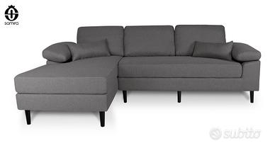Divano angolare 3 posti in tessuto o velluto mod. Washington by Samira, dalla struttura lineare e dallo stile moderno, potrà adattarsi ad ogni tipo di ambiente. Divano con chaise longue sinistra, grazie alle spalliere, ai braccioli e ai due cuscini imbottiti in fiocco, risulterà particolarmente accogliente ed indicato per godere dei momenti di relax. Il suo rivestimento donerà un tocco di fascino ed eleganza al vostro arredo. Robusto e stabile, questo divano con penisola è sostenuto da piedini dalla forma conica in legno e in plastica per rafforzare la sua solidità. Pratico e funzionale si riuscirà a montare con poche semplici mosse grazie alle istruzioni che troverete al suo interno. La consegna verrà effettuata a piano strada.
