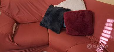 divano smontabile di tre metri per 1.80 con ai capi due recliner elettrici con pulsanti sui lati, la pelle si sta staccando ed attualmente ce un telo di copertura rosso
