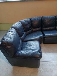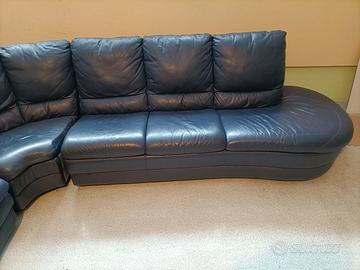 Divano angolare 5 posti modello sinfonia Divani&Divani by Natuzzi composto da poltrona, angolo e divano 3 posti con terminale tondo. Ingombro 189+318 cm larghezza 81 cm e altezza 97 cm Realizzato in pelle.