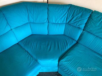 Divano ad angolo con 6 comodi posti, sfoderabile, con piccolo pouf: usato ma in condizioni abbastanza buone.