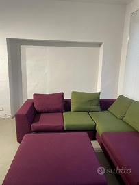 Grazioso divano artigianale dell’azienda De Angeli, prodotto a mano e completamente sfoderabile, color verde militare e viola