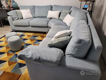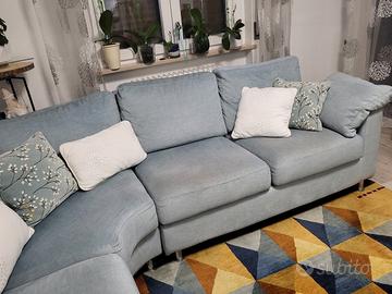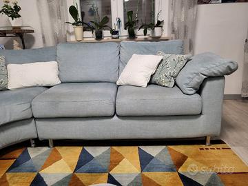 divano angolare a giro,colore azzurro grigio cielo