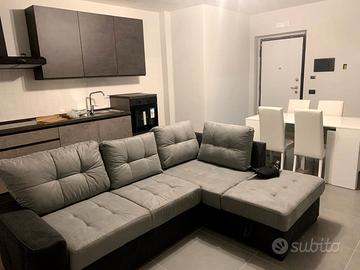 Divano angolare allungabile pari nuovo grigio scuro e nero con contenitore