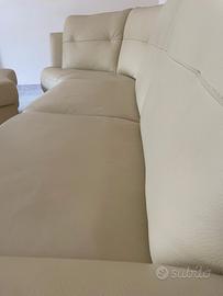 Vendo, causa trasloco immediato, divano in vera pelle. Color beige, prodotto in Italia e antimacchia. Usato pochissimo dunque praticamente nuovo. Lunghezza 290cm Larghezza 120cm Altezza 90cm Dimensioni penisola separata: 72x90 Ritiro e trasporto a cura dell'acquirente
