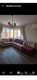 Vendo divano angolare fatto a mano, rivestito in tessuto patchwork, unico e non industriale.