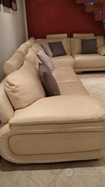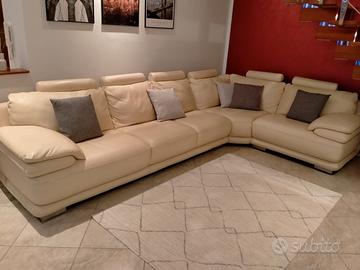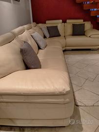 Divano angolare Atlantic chateau d’Ax in pelle color crema completo di poggia testa per ogni singolo posto