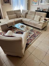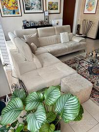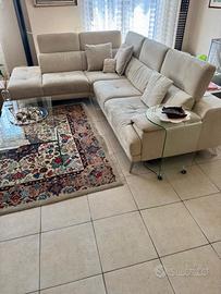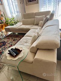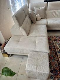 Vendo elegante divano angolare in microfribra color beige chiaro, molto confortevole e in buone condizioni . 6 posti con poggiatesta reclinabili.
