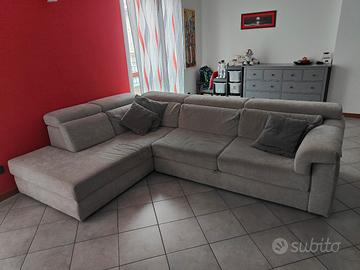 divano angolare lunghezza 2,80 -larghezza 2,10 con prolunga ad incasso ,poggiatesta alzabili (uno di questi ha un'aggancio rotto).