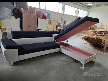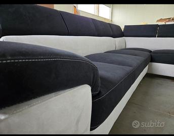 Proponiamo questo divano angolare bicolore dalle linee moderne e confortevoli, realizzato con materiali resistenti e curati nei dettagli.