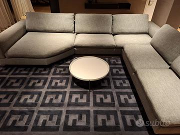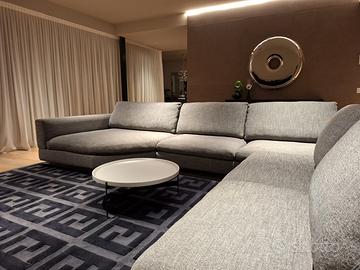 Struttura in legno con cinghie elastiche rivestita con poliuretano espanso indeformabile e tessuto protettivo accoppiato. Cuscini seduta in poliuretano espanso indeformabile e piuma; Cuscini schienale in piuma con inserto in gomma. Rivestimento in tessuto sfoderabile colore grigio.
