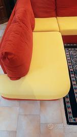 divano angolare 4 posti fisso seduta comoda misure 170x158 colore rosso e giallo grandi cuscini removibili e lavabile