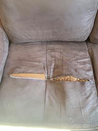 Divano angolare con letto estraibile e cassettone sotto la penisola presenti macchia e tessuto strappato come visibili dalle foto