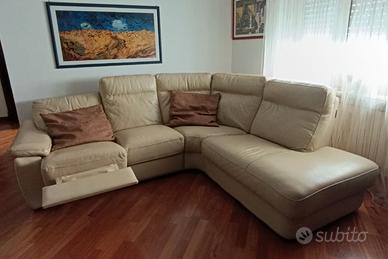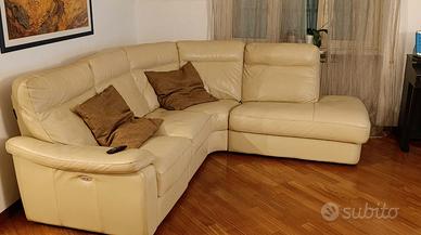 Vendo divano angolare marca Chateau d'Ax in vera pelle (pieno fiore) in ottime condizioni con elemento relax elettrico. Misure tot: L228 cm * 205 cm (lato DX chaise longue) più precisamente due sedute da 145 cm con una seduta in relax elettrica + angolo da 83 cm * 83 cm + chaise longue da 120 cm. In ottime condizioni il trasporto è a carico dell'acquirente.