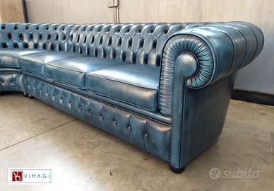 Divano Chester Chesterfield Capitonné angolare prodotto sartoriale artigianale con struttura interamente in legno.