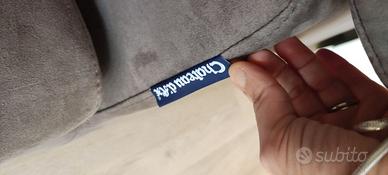 Vendo bellissimo divano angolare, marca Chateau d'ax, colore grigio perla scuro, modello Chelsea, con piedi in acciaio cromato. Il divano ha piedi in acciaio cromato e testiere reclinabili. È interamente sfoderabile, ma il tessuto è facilmente pulibile con un semplice panno umido. il divano è lungo 320 cm e può essere divino in due parti.