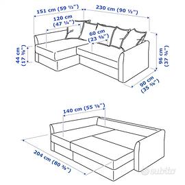 Vendo divano angolare con chaise lougue Holmsund Ikea colore beige, causa passaggio a modello piu piccolo. Divano con pouf estraibile che lo trasforma in matrimoniale. La chaise lounge si alza e diventa anche un ottimo contenitore. In abbinata 5 cuscini. Solo ritiro in zona mezzocammino Roma. Lo faro trovare smontato per il ritiro al piano 4 con ascensore.