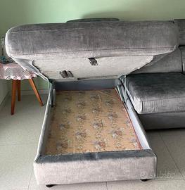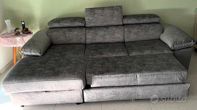 Divano Poltronesofà con 2 Posti laterale meccanismo letto scorrevole (dim. 101x158x114) meccanismo schienale regolabile, verso DX + 1 Posto laterale lungo con contenitore (dim. 101x99x180) meccanismo schienale regolabile, verso DX. Rivestimento in MICROFIBRA colore GRIGIO Mod. Eranthis. Ulteriore Rivestimento in TESSUTO colore FIORDALISO Mod. Gaeta,. Nuovo, mai utilizzato.