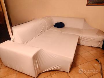 Vendo spazioso divano angolare in pelle bianca, dotato di comoda penisola e funzione allungamento (ideale per il relax o come letto d'emergenza).