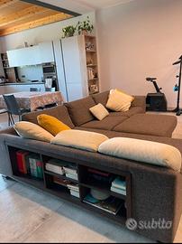 Vendo divano angolare con penisola e pouf coordinato in tessuto grigio. In aggiunta, piccola libreria sul lato. Dimensioni circa 280×200 cm Condizioni generali buone, piccola bruciatura su un cuscino (vedi foto), ma copribile se spostata la fodera. Cuscini sfoderabili, molto comodo. Prezzo trattabile: €600