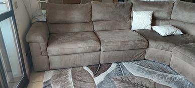 Divano angolare con tessuto antimacchia, totalmente sfoderabile, meccanismo recliner con telecomando.