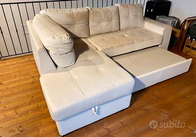 Vendo divano ecopelle angolare Con contenitore e puf scorrevole estraibile Usato, presenta segni di usura sui cuscini e seduta, risolvibile con una copertura. Misure 240 cm larghezza, altezza seduta 45cm, profondita’ 170 cm. Prezzo trattabile