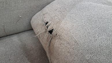Vendo divano angolare curvo 2m e 45 cm x 2m e 45 cm con pouf diametro 80 cm. Presenta due difetti come in foto. La struttura interna è in legno di abete massello e l' imbottitura è perfetta. Vendo € 400 con possibilità di consegna da pattuire.